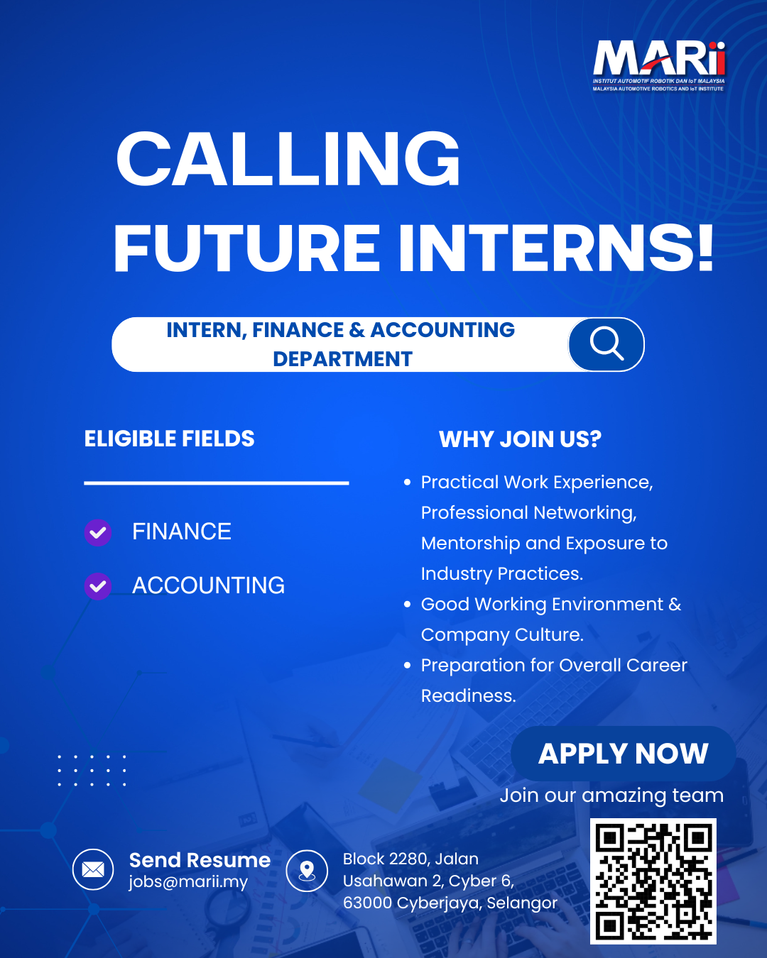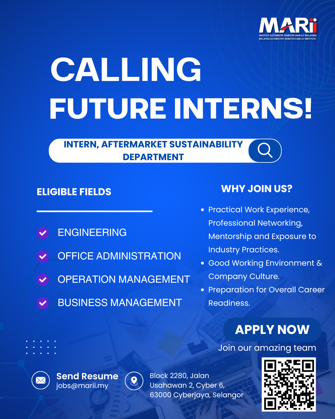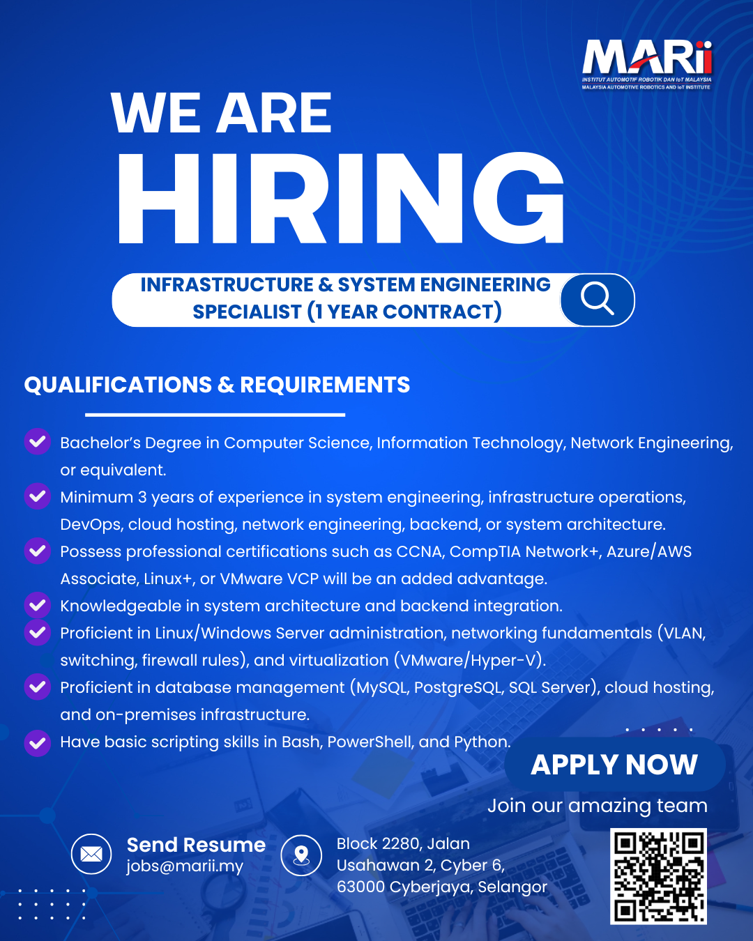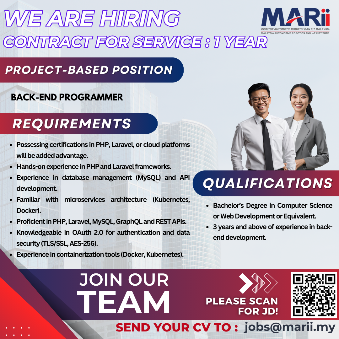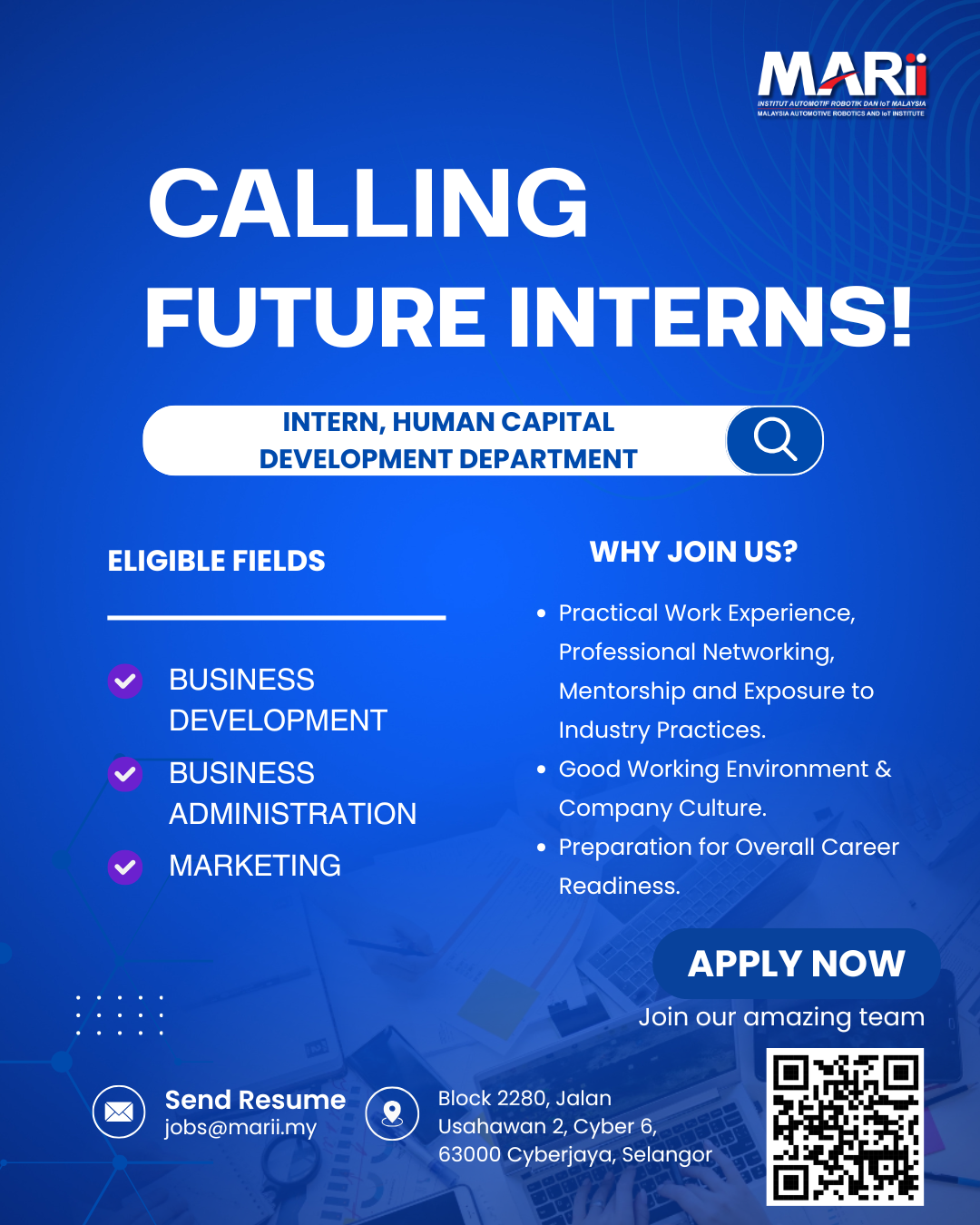 Submit your updated CV to jobs@marii.my for immediate consideration and be a part of our ongoing success!